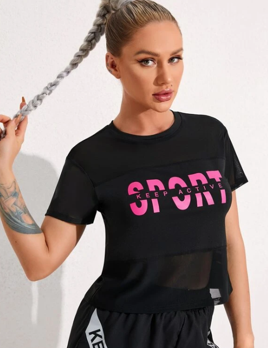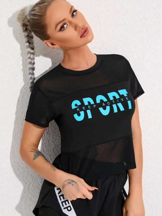 Camiseta deportiva negra de malla con estampado