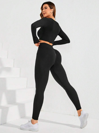 Conjunto De Deporte Sin Costuras Con Camiseta Corta Raglan Manga Y Leggings