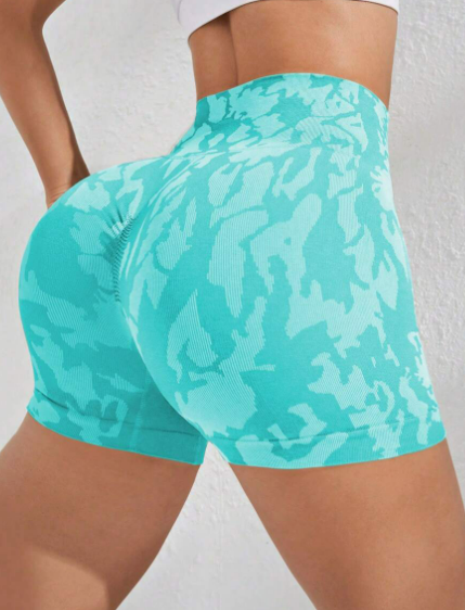 Yoga Trendy Shorts deportivos con estampado de camuflaje de cintura ancha